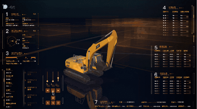 - 前進後退 — 用戶可以通過鍵盤 wasd 實現前後左右,或者點擊 2D 界面 WASD 來實現挖機的前進後退。