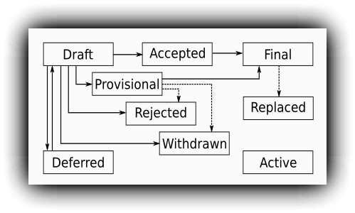 一篇PEP是否最終被接受並且決定去實現是需要經過層層複審的,反正要經過很麻煩了一個流程,下面有個Python官方畫的簡單流程圖:
