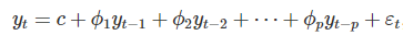 一個p階的自回歸模型可以表示如下:c是常數項,εt是隨機誤差項。