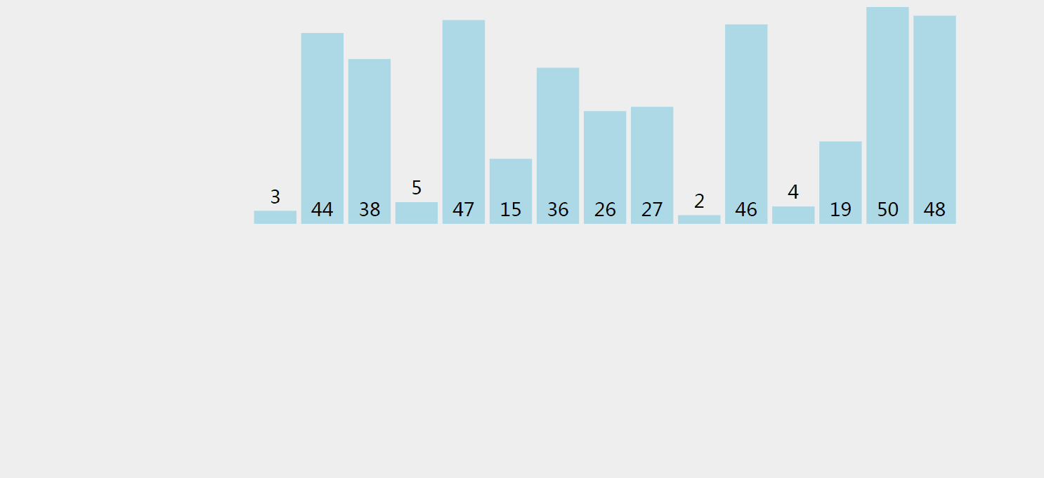 所謂“分”,指的是將一個亂序數列不斷進行二分,得到許多短的序列。