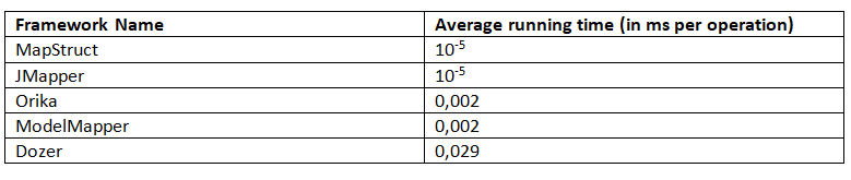 該基準清楚地表明,MapStruct 和 JMapper 均具有最佳的平均工作時間。