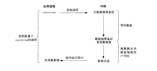 阻塞I/O是最早最基礎的I/O模型,其在讀寫數據過程中會阻塞。通過下圖我們可以看到,當用戶進程調用了recvfrom這個系統調用后,內核開始第一階段的數據準備工作,直到內核等待數據準備完成,然後開始第二階段的將數據從內核複製到用戶空間的工作,最後內核返回結果。整個過程中用戶進程都是阻塞的,直到最後返回結果后才接觸阻塞block狀態。阻塞I/O模型適用於併發量小且對時延不敏感的系統。