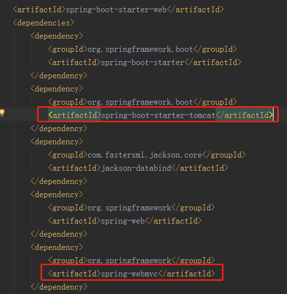 <dependency> <groupId>org.springframework.boot</groupId> <artifactId>spring-boot-starter-web</artifactId> </dependency>